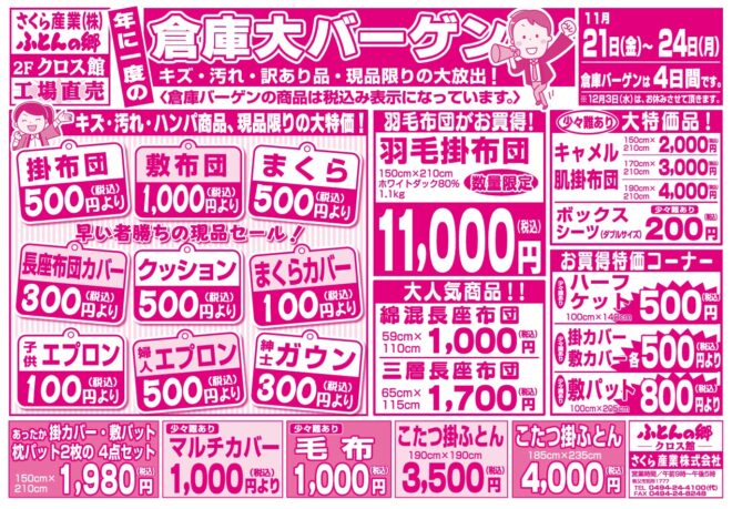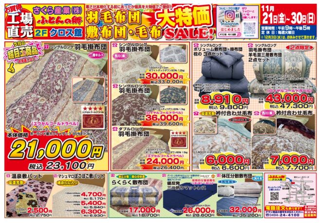 売り出し期間:2025年11月21日(金)~30日(日)営業時間:9:00~17:00定休日:毎週火曜日